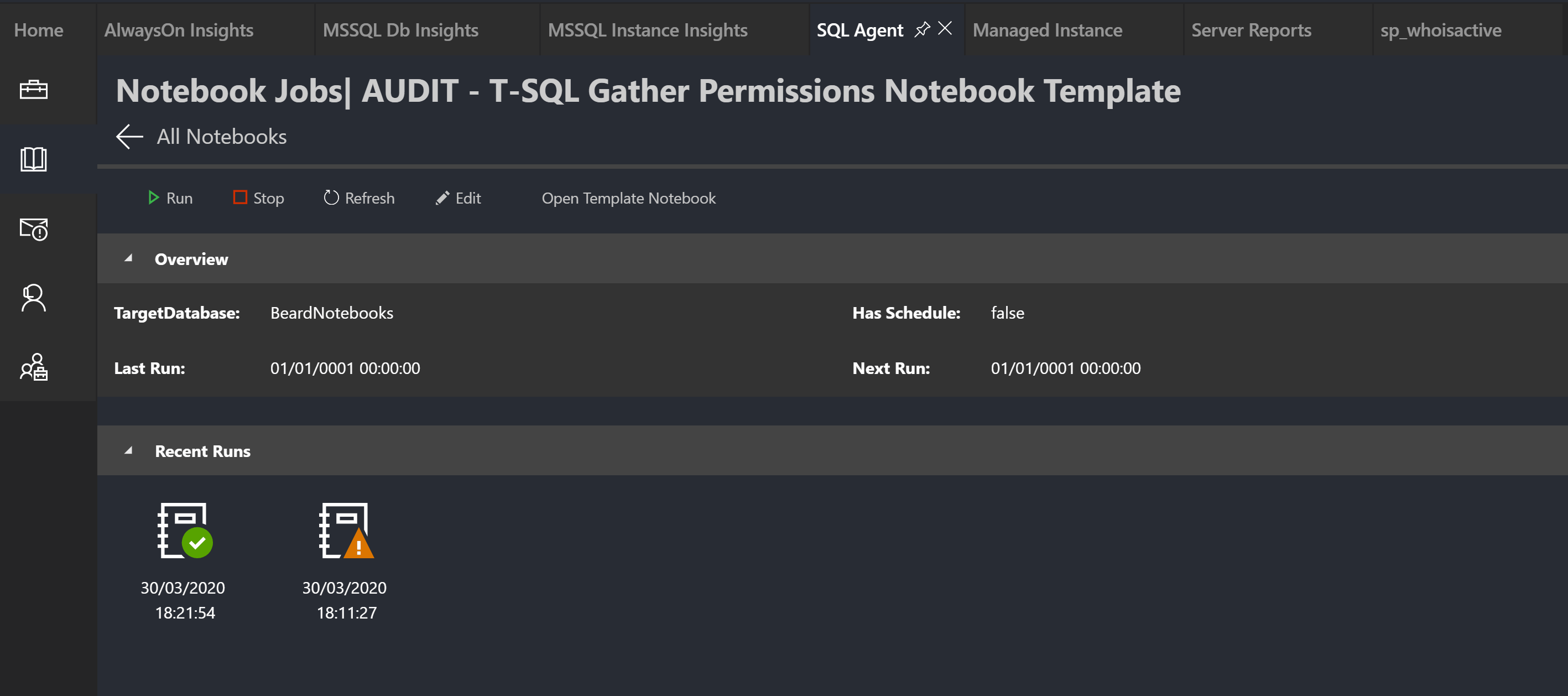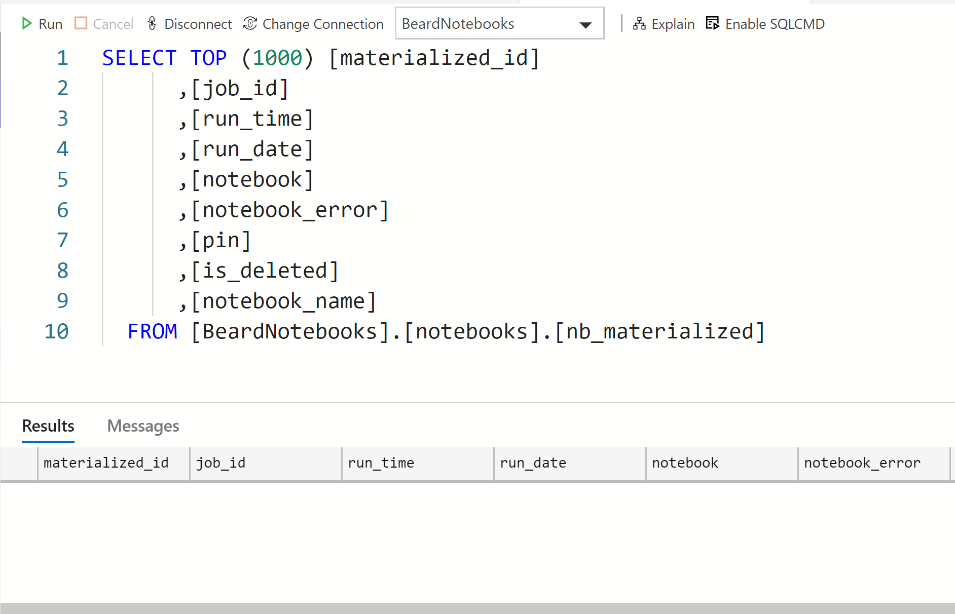 Another thing that you can do with notebooks is run them as Agent Jobs and save the results of the run.