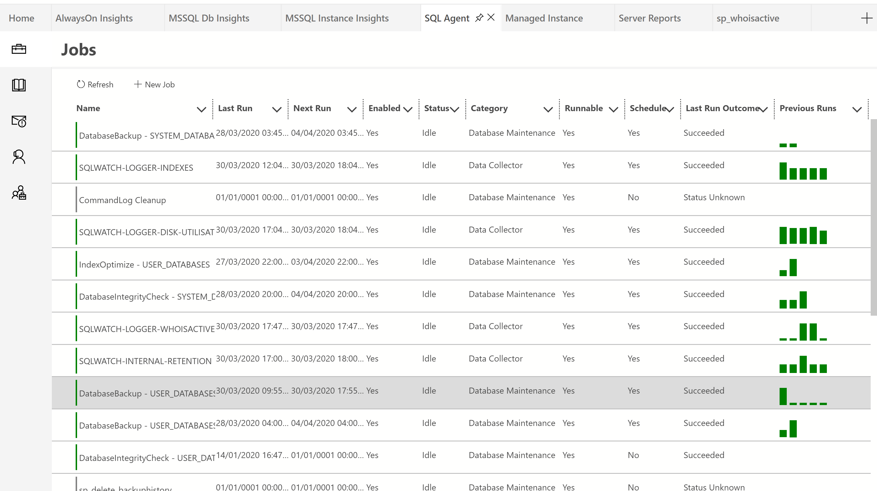 Its pretty neat, it has green and red bars against the jobs showing success or failure and the larger the bar the longer the run time. On the left you will see a book. Click that