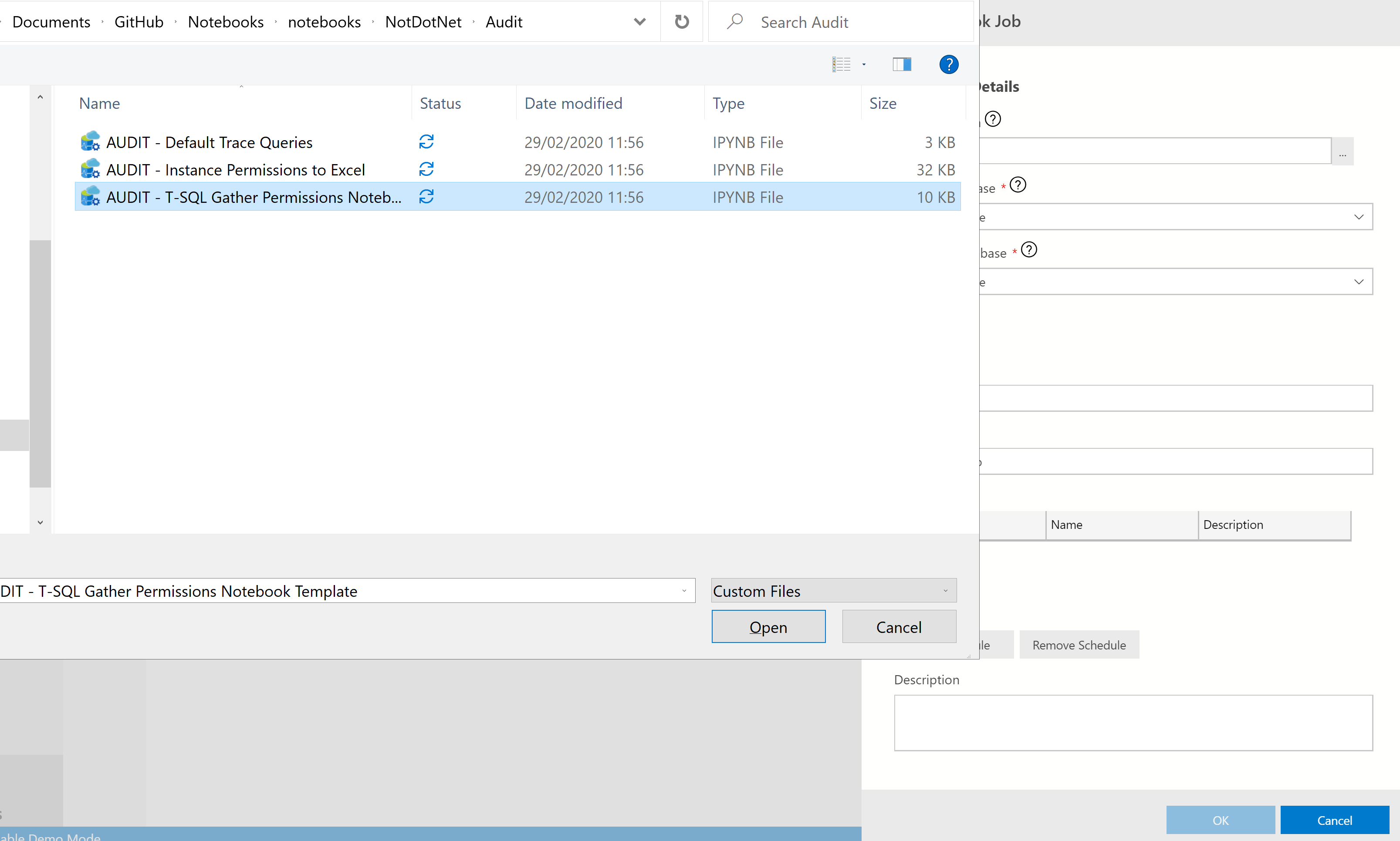 You can create an Agent Job to run a notebook. As a notebook is just a json file, it can be stored in a database table. This interface will create two tables one to store the templates and one for the results. Click New Notebook Job