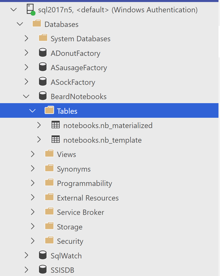 Once the job is created, you will see two tables in the storage database notebooks.nb_materialized and notebooks.nb_template